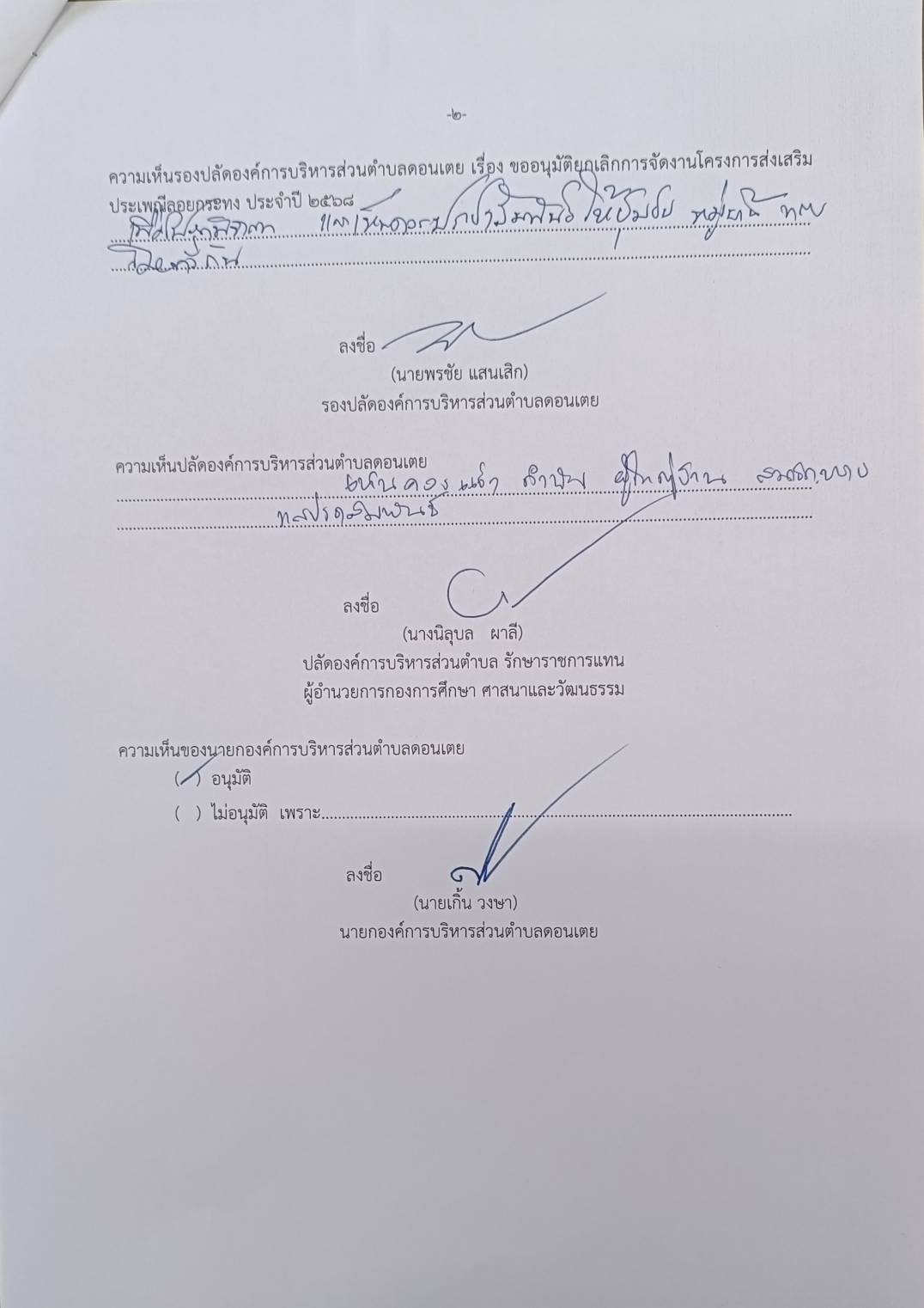 28-10-2568 องค์การบริหารส่วนตำบลดอนเตย อำเภอนาทม จังหวัดนครพนม ของดจัดกิจกรรม ประเพณีลอยกระทง ประจำปี ๒๕๖๘ วันพุธ ที่ ๕ พฤศจิกายน ๒๕๖๘ เพื่อแสดงความอาลัยและน้อมรำลึกในพระมหากรุณาธิคุณอันหาที่สุดมิได้ แต่ สมเด็จพระนางเจ้าสิริกิติ์ พระบรมราชินีนาถ พระบรมราชชนนีพันปีหลวง 03-10-2568 รายงานงบการเงินประจำเดือนกันยายน พ.ศ. 2568 01-10-2568 ข้อบัญญัติงบประมาณรายจ่าย ปี 69