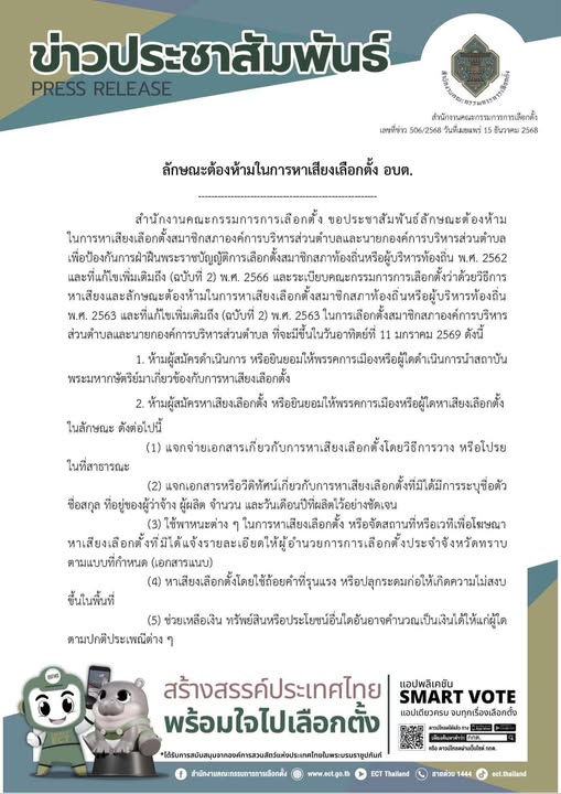 ข่าวประชาสัมพันธ์ ลักษณะต้องห้ามในการหาเสียงเลือกตั้ง อบต.