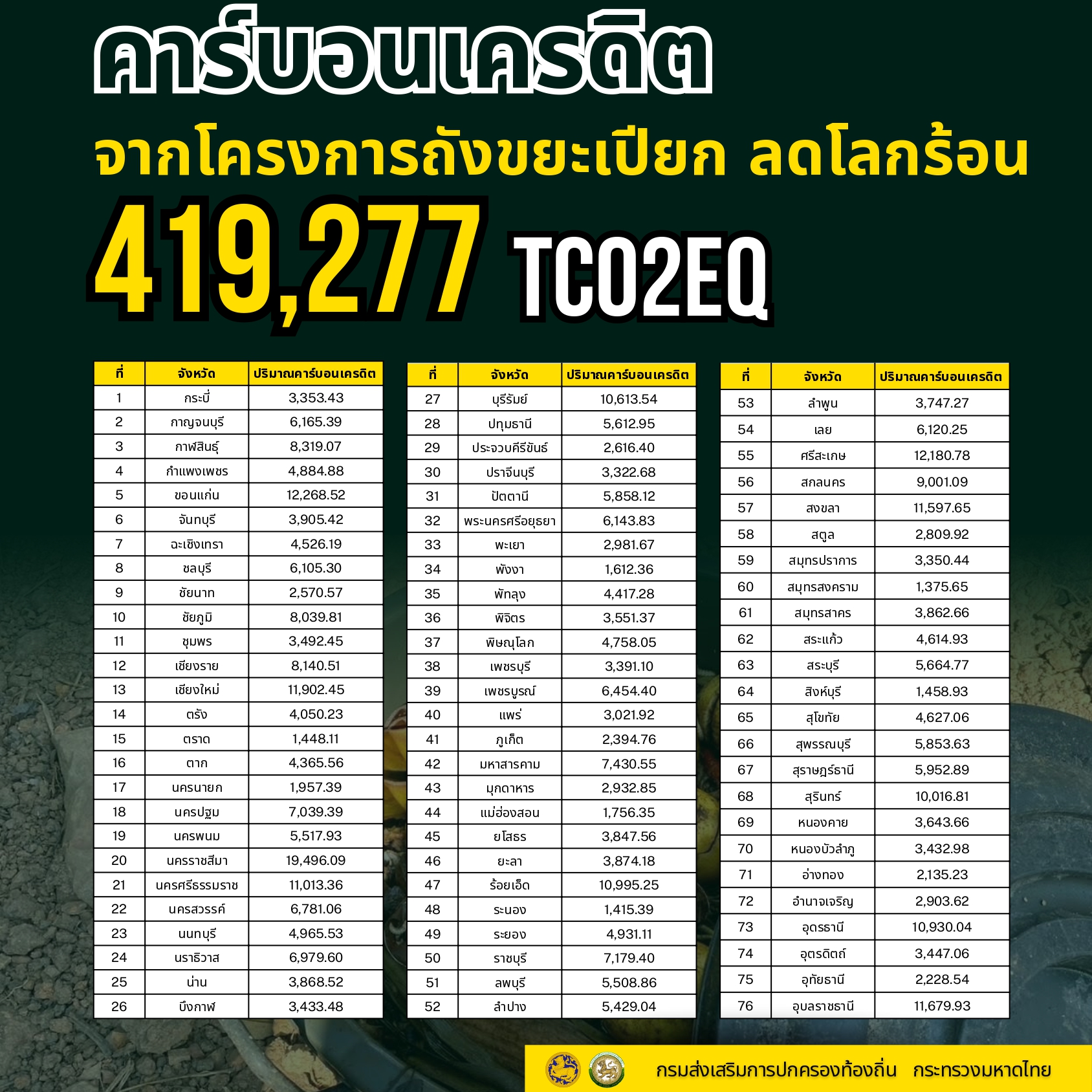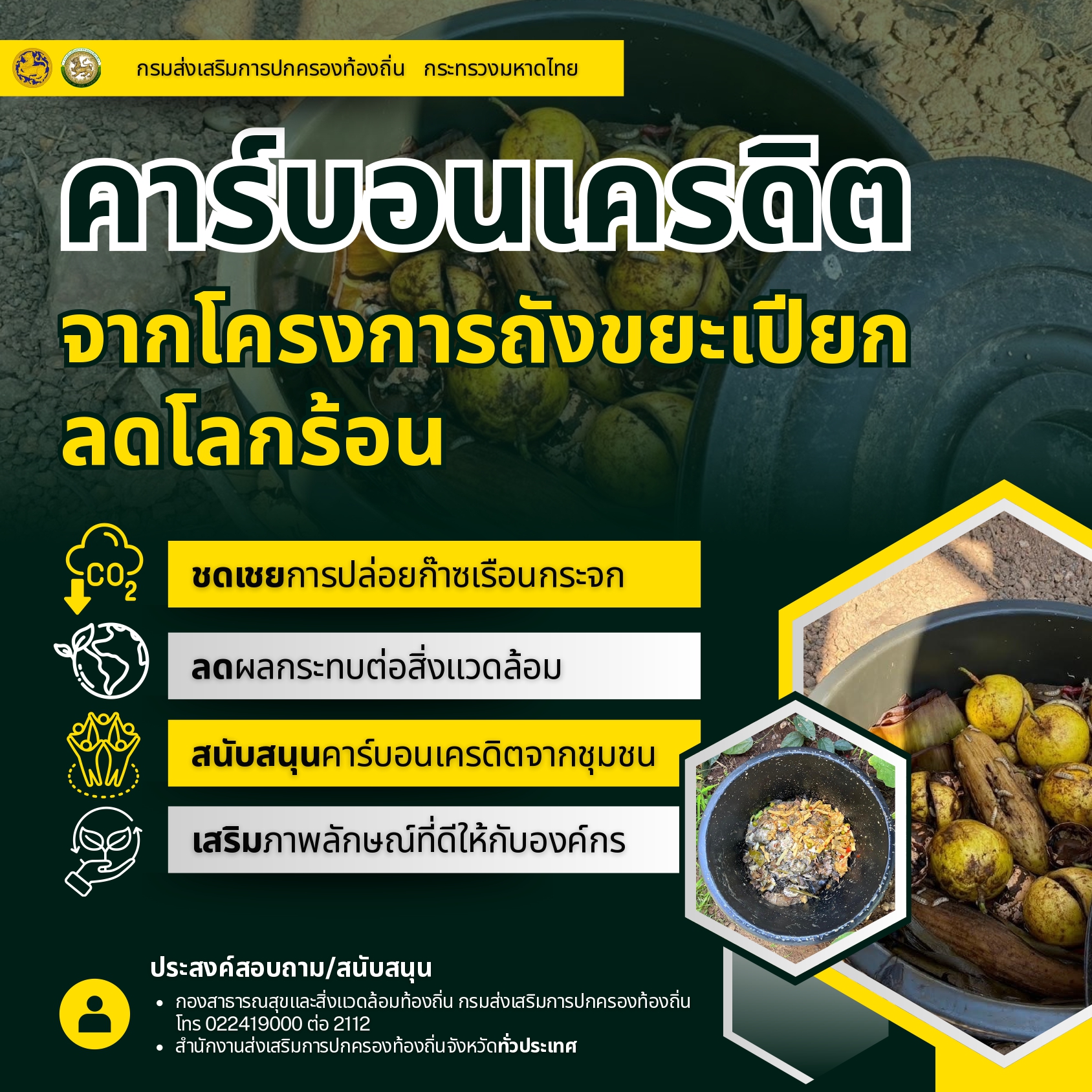 ประชาสัมพันธ์ข้อมูลการรับรองปริมาณกา๊ซเรือนกระจกจากโครงการถังขยะเปียก ลดโลกร้อนขององค์กรปกครองส่วนท้องถิ่น