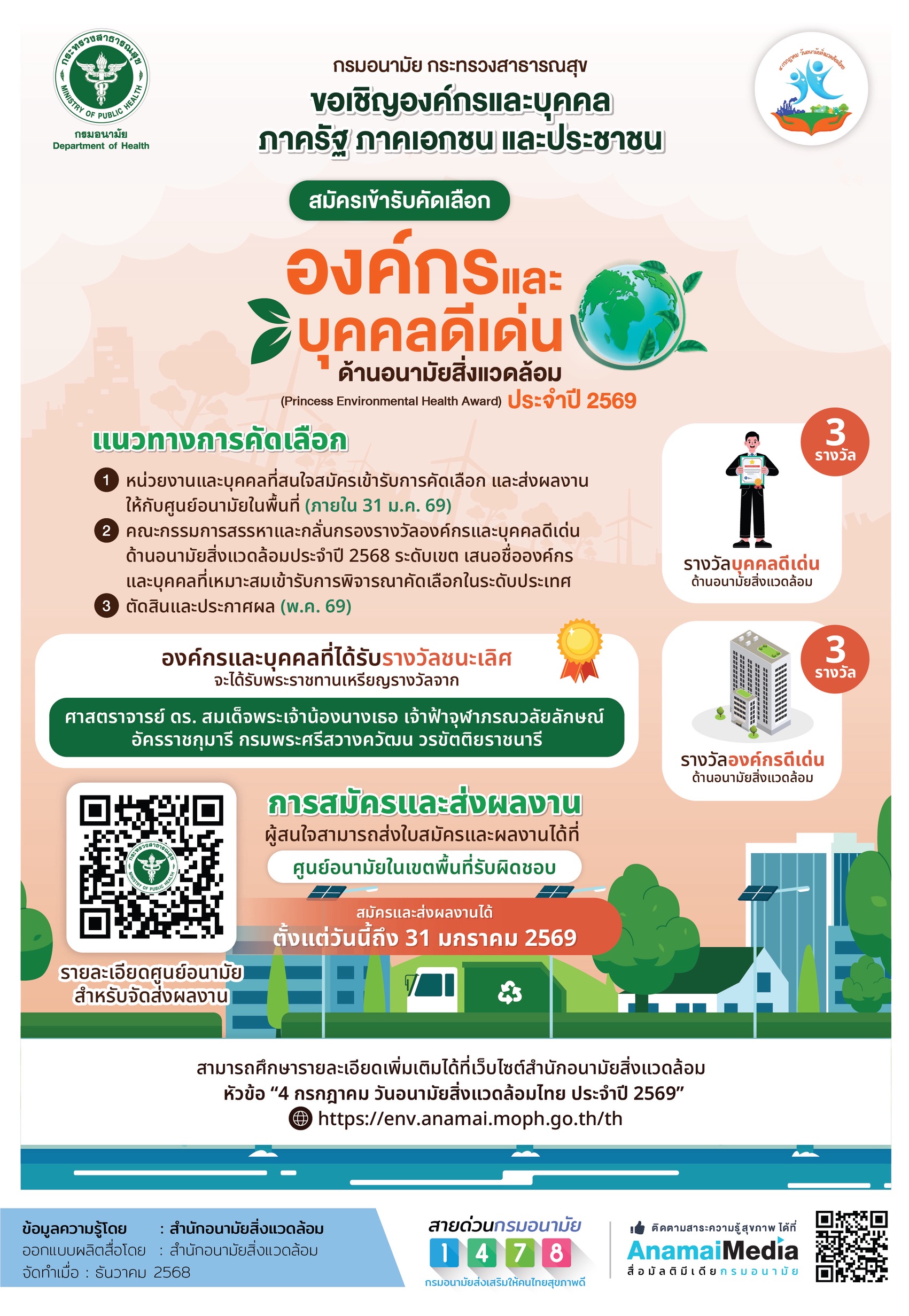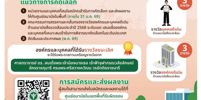 ประชาสัมพันธ์เชิญชวนองค์กรและบุคลากรเพื่อสมัครเข้ารับการคัดเลือกรางวัลองค์กรและบุคคลดีเด่นด้านอนามัยสิ่งแวดล้อม
