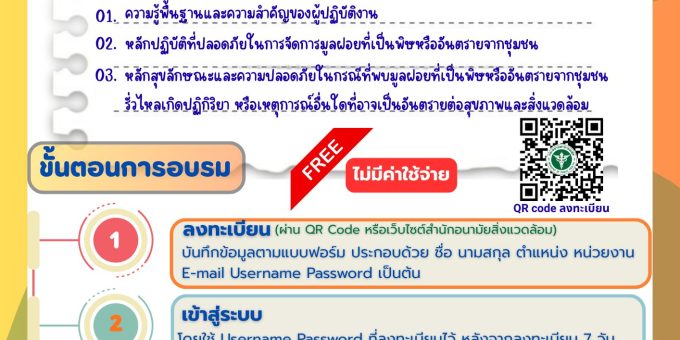 ประชาสัมพันธ์หลักสูตรออนไลน์”การจัดการมูลฝอยที่เป็นพิษหรืออันตรายจากชุมชนอย่างปลอดภัยสำหรับผู้ปฏิบัติงาน ประจำปงบประมาณ พ.ศ. 2569″